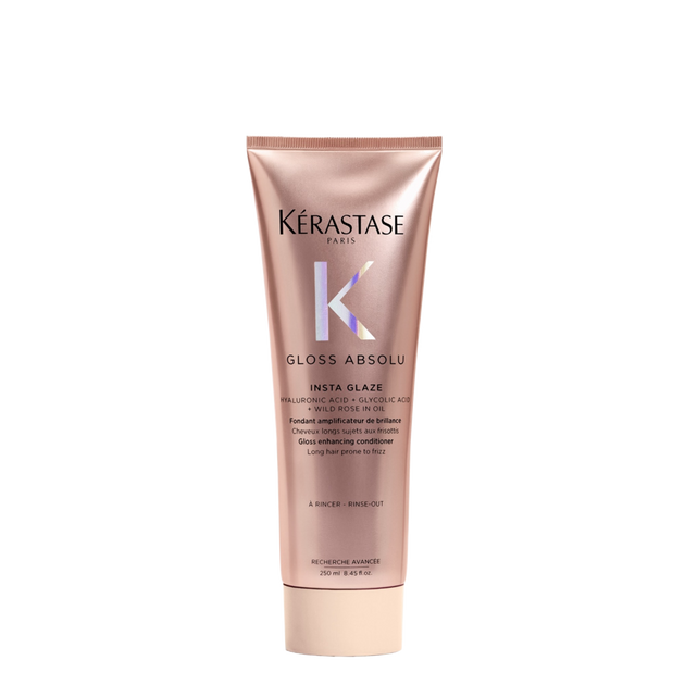 Insta Glaze by Kérastase is a gloss-enhancing conditioner for long, frizz-prone hair. Infused with hyaluronic acid, glycolic acid, and wild rose oil, it delivers soft, bouncy, glossy results.